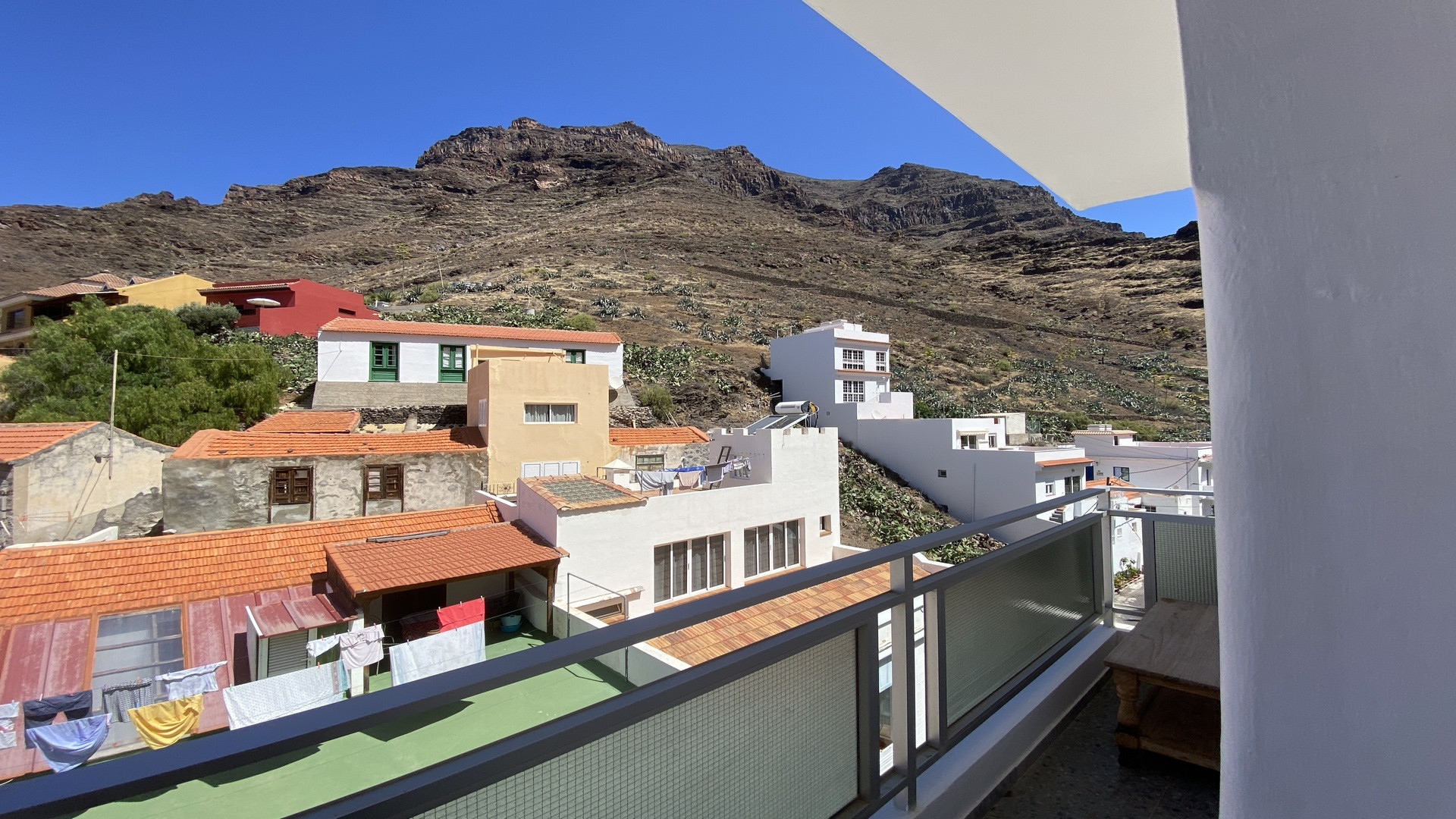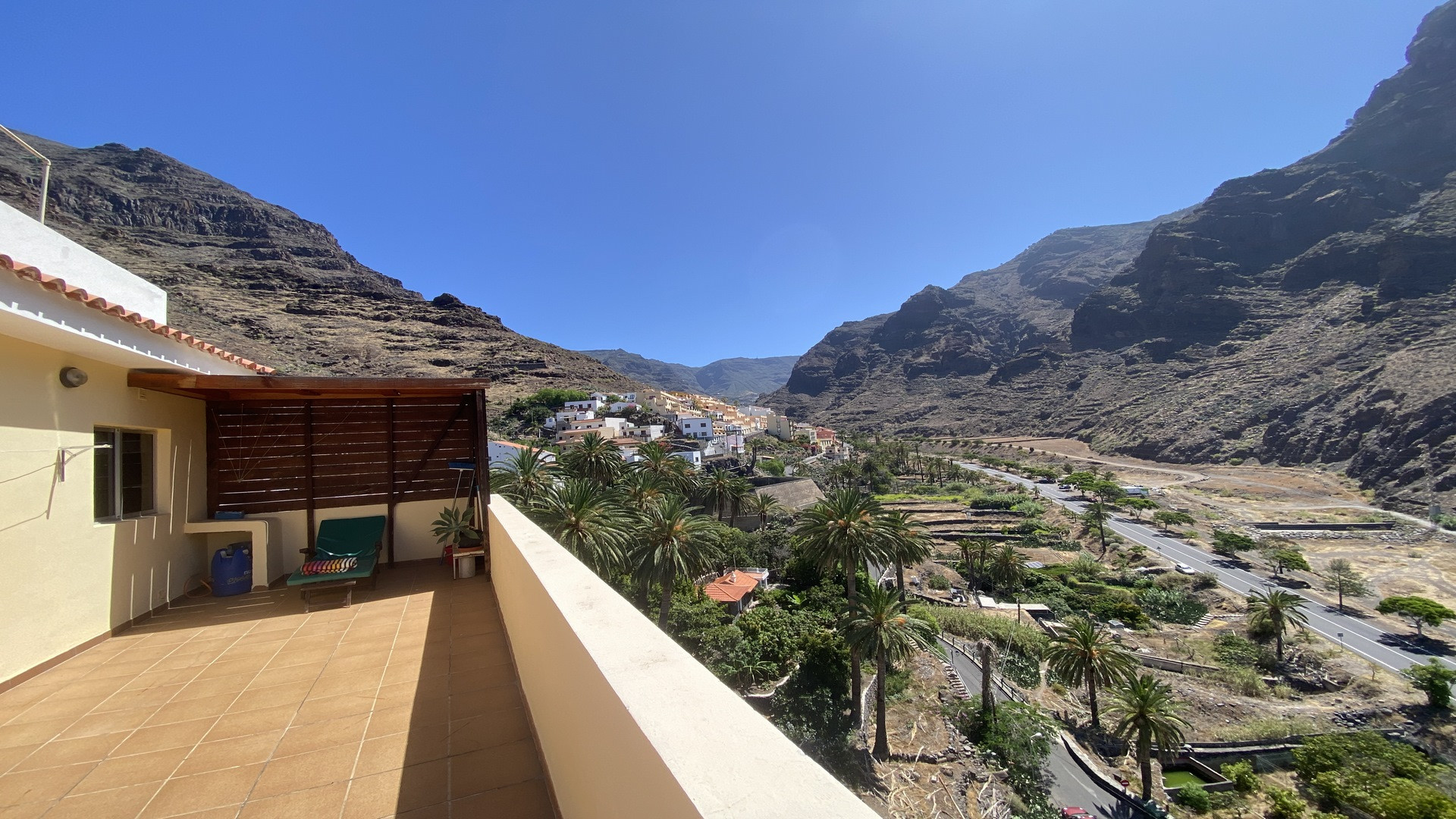 The house Apartamentos Gran Rey is situated in the upper La Calera (Las Orijamas) and offers apartments of different sizes. All of them are renovated, offer sea view and have SAT-TV. The top level terrace with sunbeds, table and chairs can be used by all the guests and offers a panoramic view to the sea and the valley up. The Apartment Nº 1 contains of one bed room, living kitchen, bathroom and a small terrace equipped with table and chairs. The beach is at about 20 minutes to go, the next supermarket at about five minutes to go. Sensitive persons could be disturbed by the road leading through the valley.1 review